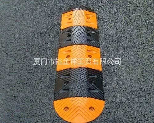 橡膠減速帶,材質(zhì)為橡膠材料,外形為坡面,顏色往往黃黑相見,用膨脹螺絲固定到道路路口,是起到車輛減速作用的安全設(shè)施。