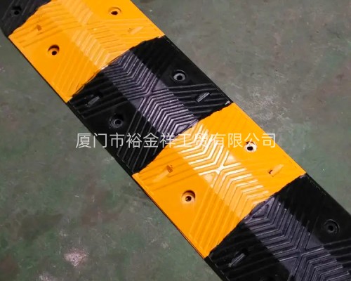 4. 黑黃相間,特別醒目;每塊端節(jié)上可安裝高亮度的反光珠,晚上反射光線,使司機(jī)可以看清減速破的位置