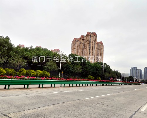 該項目位于峽漳路,為 G316 國道長樂段的一部分,設(shè)計路段路線長度約 3.2 公里,紅線寬度約 50 米,雙向 8 車道,道路限速 60km/h。該道路途經(jīng)交通量大,車速快,大中型貨車比例高。原中央隔離采用不具備防撞功能的防眩光護欄,因此本次對該段中央護欄進行拆除和新建中央波形護欄設(shè)計。為提升道路安全性和美觀性,本次設(shè)計全線采用綠植槽設(shè)置于波形護欄中央。嶄新的深綠色中央波形護欄猶如長龍一般,居于道路中央,不僅給長樂市民帶來了安全美觀的出行體驗,也為長樂城市建設(shè)增添了一道亮麗的風(fēng)景線。
