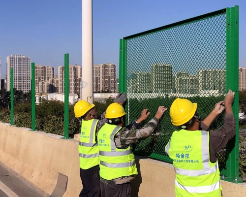 4、橋梁防拋網(wǎng)的網(wǎng)片必須和立柱連接牢靠,網(wǎng)面安裝后平整,無明顯翹曲和凹凸現(xiàn)象。防拋網(wǎng)施工完畢后,高駐辦將組織相關(guān)人員對防拋網(wǎng)的質(zhì)量和安裝效果進行驗收。