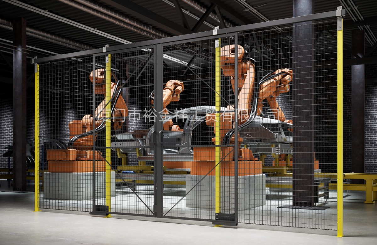 車(chē)間機(jī)器設(shè)備安全隔離網(wǎng)作為工業(yè)生產(chǎn)中的一道重要防線,其黃黑色的設(shè)計(jì)和精心構(gòu)造的配件共同構(gòu)成了一個(gè)既醒目又實(shí)用的安全防護(hù)體系。