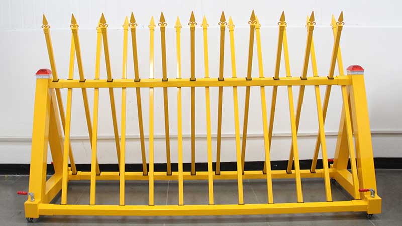 移動拒馬的結構設計,遵循著簡單而穩(wěn)固的原則。主體通常由橫桿、豎桿和斜撐組成,通過巧妙的焊接或螺栓連接,形成一個穩(wěn)定的三角形結構。三角形結構具有極高的穩(wěn)定性,這是力學原理在實際應用中的完美體現(xiàn),它能夠確保拒馬在受到外力沖擊時,依然能夠保持自身的形狀和位置,不輕易發(fā)生變形或倒塌。底部一般會安裝帶有剎車功能的萬向輪,這些輪子就像是拒馬的 “腳”,賦予了它靈活移動的能力,同時剎車功能又能在需要時將拒馬穩(wěn)穩(wěn)地固定在原地,確保其在使用過程中的安全性。