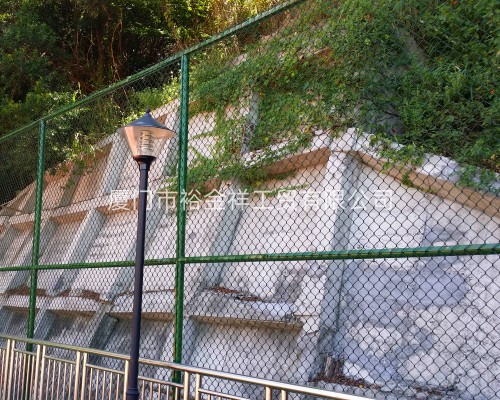 在水泥石屑層施工結(jié)束維護(hù)過(guò)程中,要將一切預(yù)埋件工程悉數(shù)裝置結(jié)束,施工根底第一層找平地墊時(shí),要按圖紙的規(guī)劃要求,將預(yù)埋件悉數(shù)預(yù)埋好,網(wǎng)柱預(yù)埋件選用250×250×12mm鋼板,預(yù)埋深度為500mm,燈柱選用400×400×14mm鋼板,預(yù)埋深度為600mm長(zhǎng)寬為500×500mm,預(yù)埋線管為PVC膠管,預(yù)埋深度為120mm,護(hù)欄網(wǎng)柱選用專用預(yù)埋件進(jìn)行預(yù)埋。圍欄網(wǎng)裝置包含立桿、上下橫桿及圍網(wǎng),一切立桿、橫桿、圍欄及門(mén)都選用醇酸紅防銹底漆涂?jī)蓪右陨希龠x用醇酸野外磁漆涂?jī)傻?,顏色為綠色,而且圍網(wǎng)裝置包含扁鐵和一切零配固定件,立桿為:65鋼管,橫桿為50鋼管,圍網(wǎng):包膠圍網(wǎng),網(wǎng)距為45mm×45mm,外徑為3.9mm,內(nèi)徑為2.5mm高度為4.0m,顏色為綠色,門(mén)是50鋼管架,圍網(wǎng)類(lèi)型與圍網(wǎng)共同。